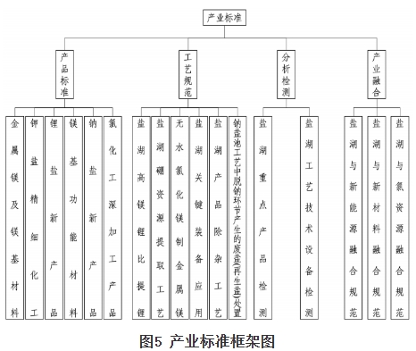 (五)盐湖产业标准。盐湖产业标准包括产品、工艺规范、分析检测、产业融合等。产品标准方面,包括金属镁及镁基材料、钾盐精细化工、锂盐新产品、镁基功能材料、钠盐新产品、氯化工深加工等相关产品标准。工艺规范方面,包括盐湖高镁锂比提锂、盐湖硼资源提取、无水氯化镁制金属镁、盐湖关键装备应用、盐湖产品除杂、钠盐池工艺中脱钠环节产生的废盐处置等工艺技术标准。分析检测方面,包括盐湖重点产品检测和工艺技术设备检测等相关标准。产业融合方面,包括盐湖与新能源、新材料、氯资源的融合规范。