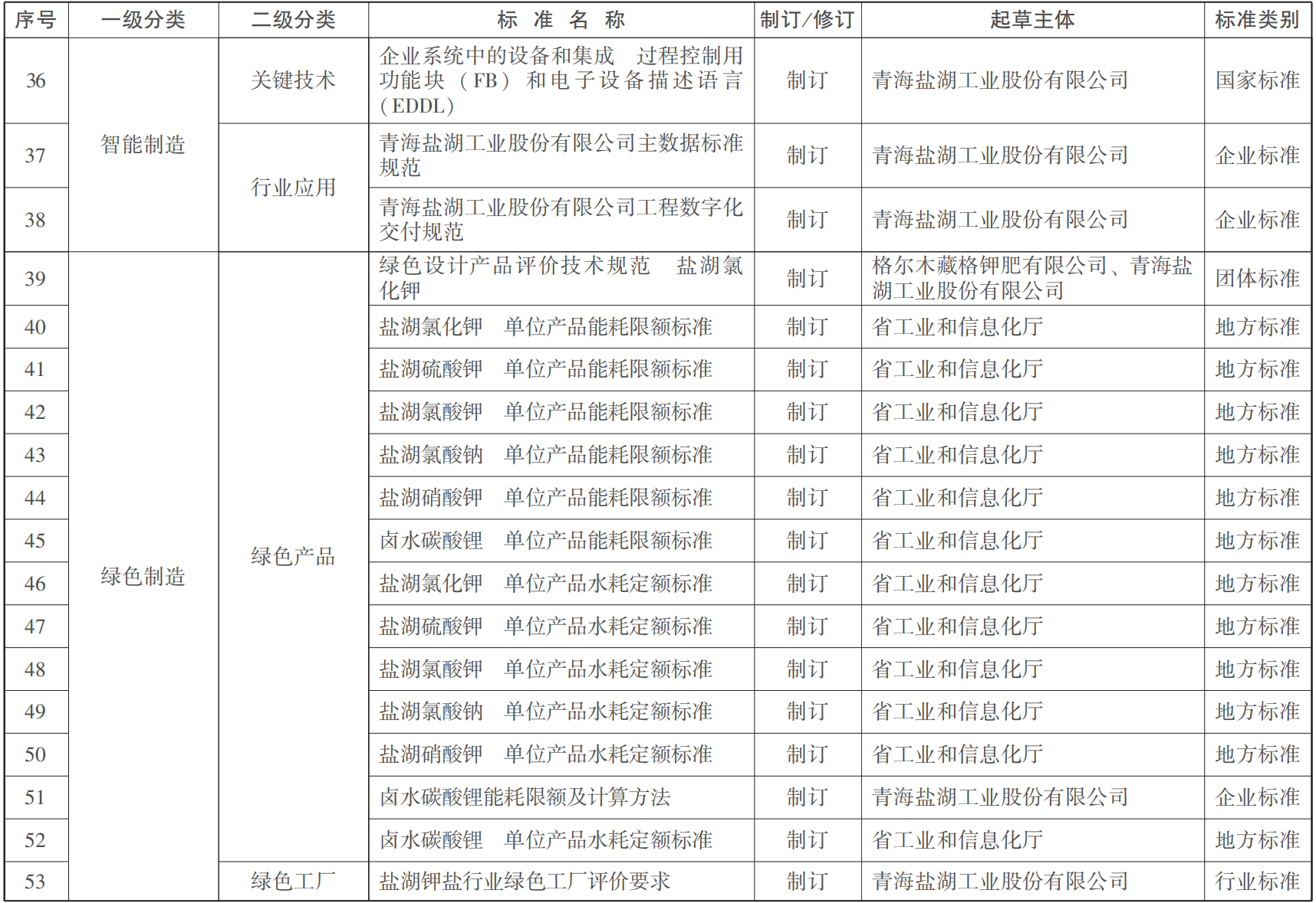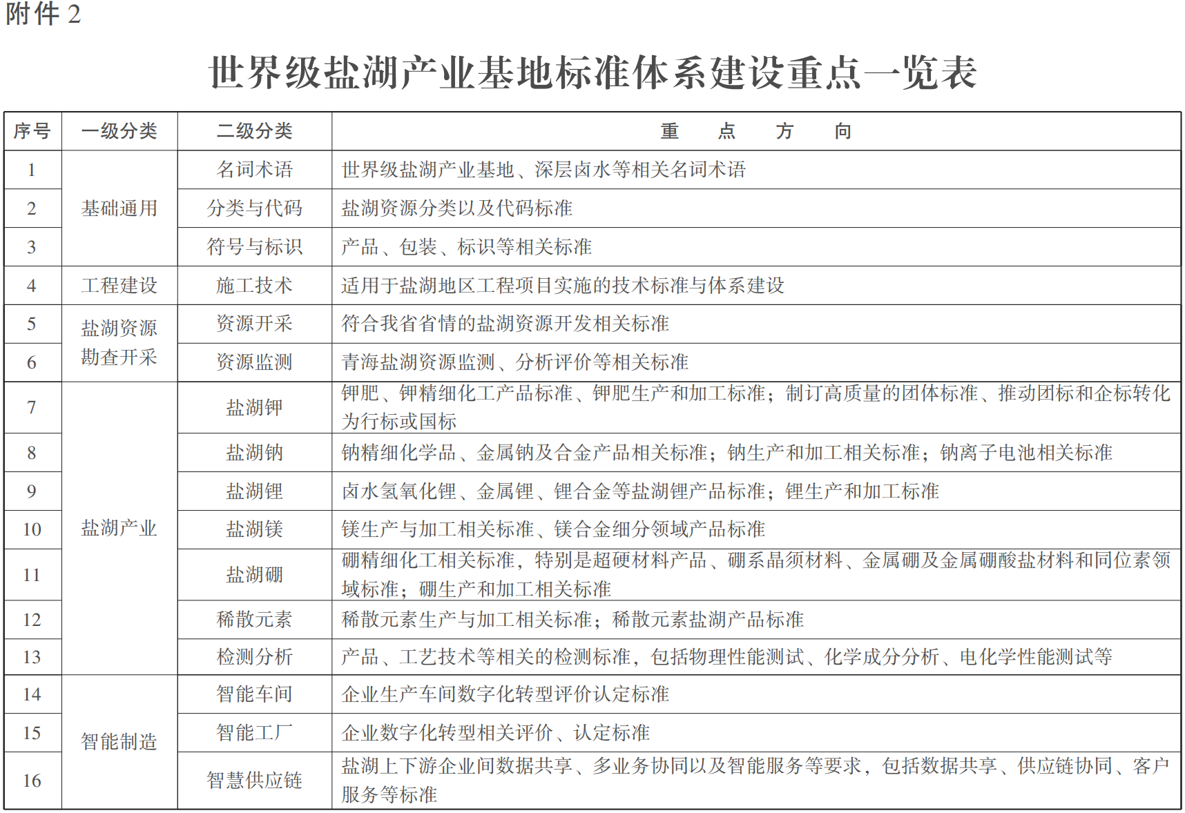 2.世界级盐湖产业基地标准体系建设重点一览表