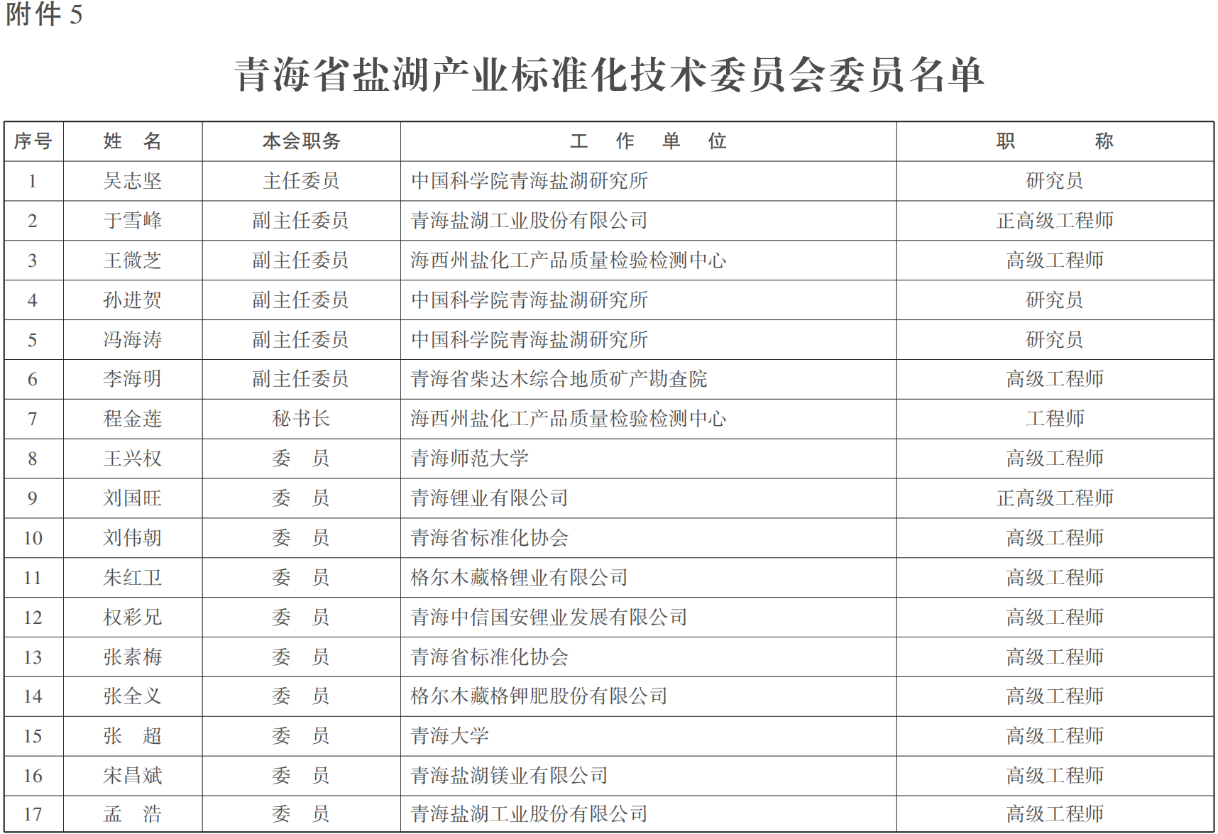 5.青海省盐湖产业标准化技术委员会委员名单