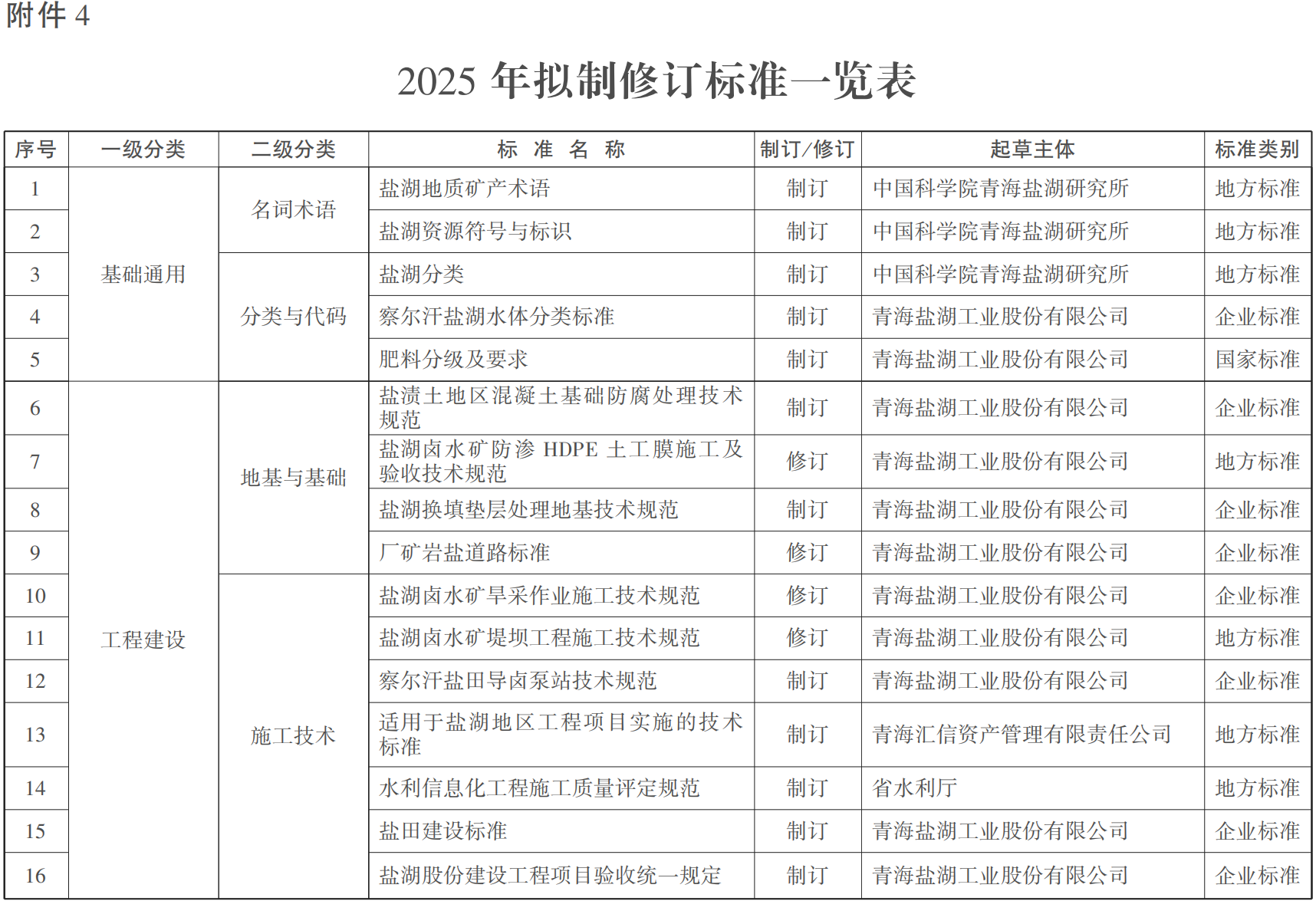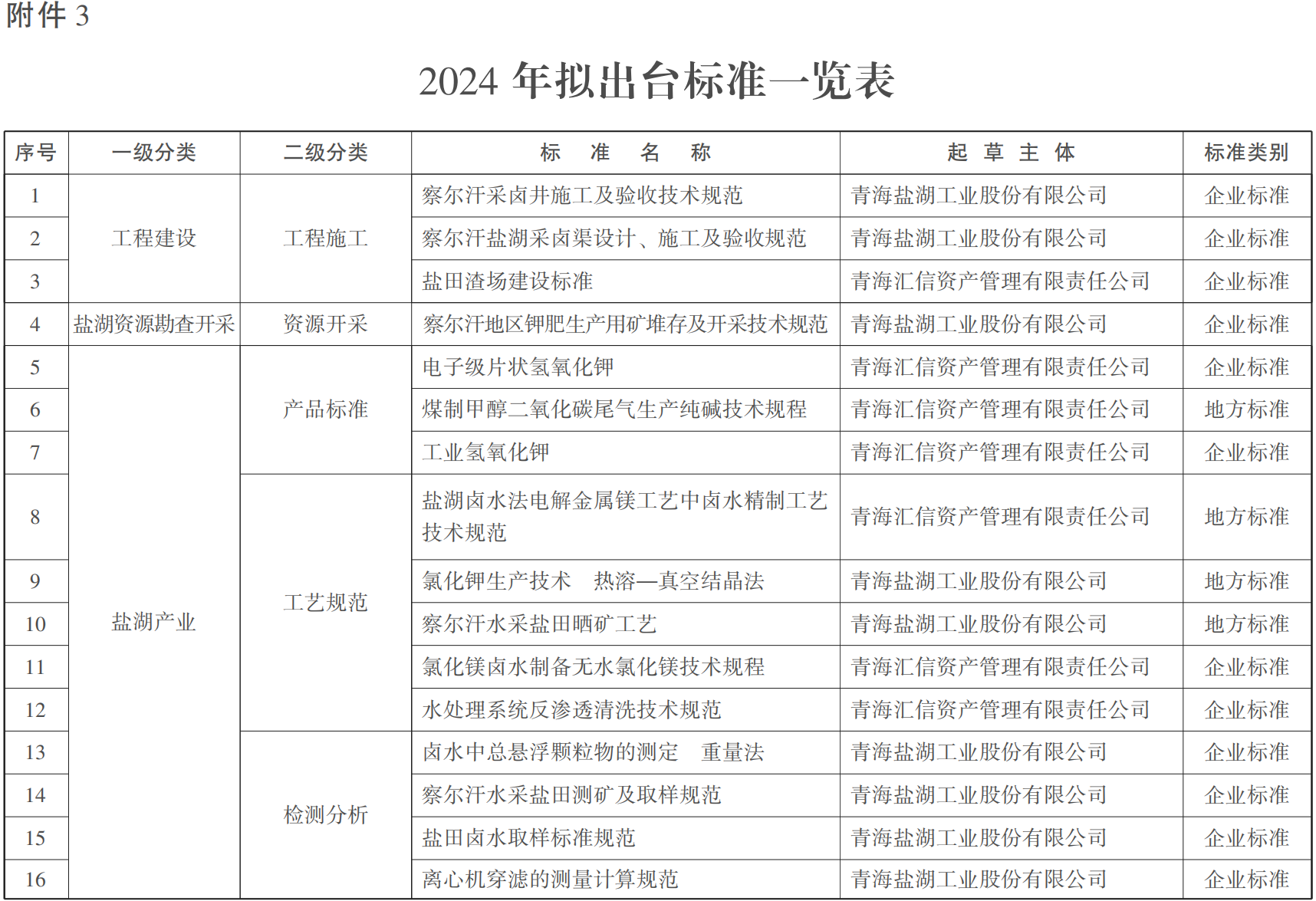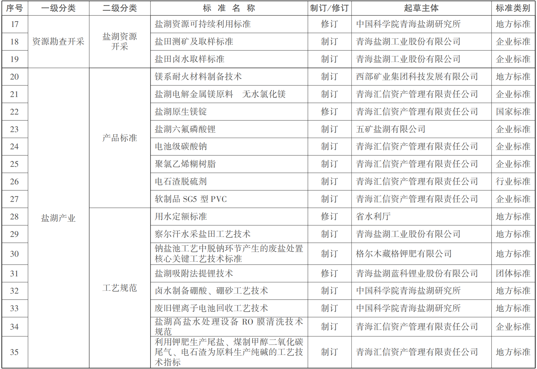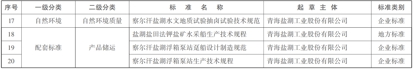 到2025年,世界级盐湖产业基地标准体系初步建立。制修订各类标准50项以上,参与制订国家标准和行业标准3项。