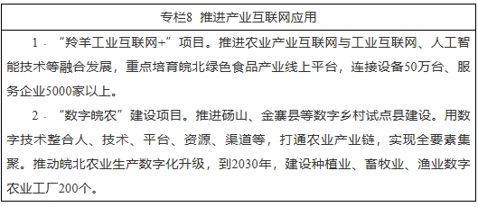 3﹒推进产业互联网应用。支持产业链条长、行业影响力大的“链主”企业、头部企业,牵头建设农业产业互联网平台。依托羚羊工业互联网,搭建皖北绿色食品产业线上平台,链接各类市场主体,推动科技、产业、资本直通,汇聚绿色食品产业发展全要素。深化“5+8”试点,推进数字乡村智慧农业暨农业产业互联网建设,推进农业产业互联网与工业互联网、人工智能技术融合发展,为企业转型升级提供更加优质的服务和解决方案,让数字技术为绿色食品产业发展赋能。