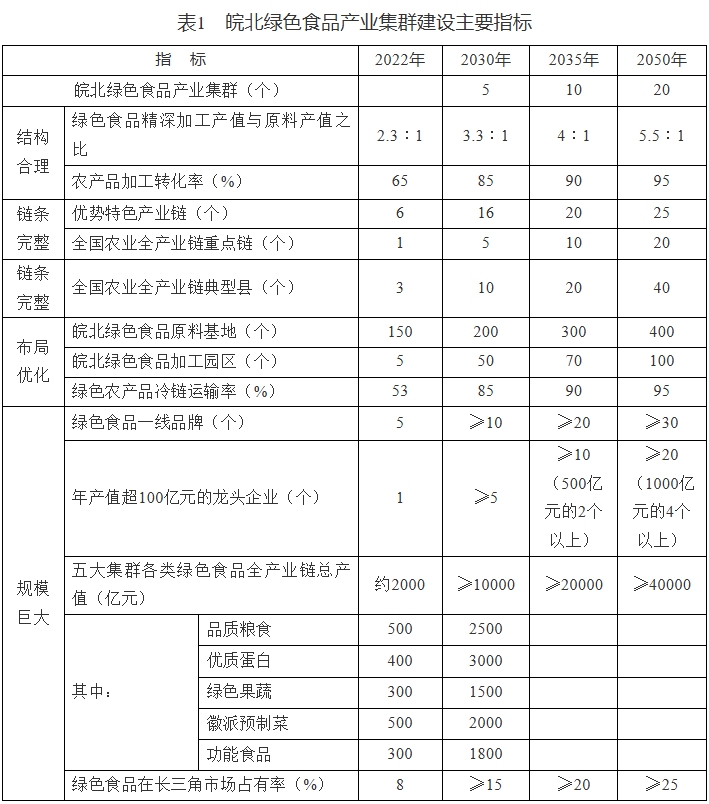 到2035年,皖北绿色食品产业集群建设进一步巩固,为皖北基本实现农业农村现代化提供有力支撑。