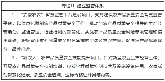 3﹒建立监管体系。严格农业投入品使用,依法实施农业投入品登记许可,加强生产经营管理和使用指导,建立农药、兽用处方药等农业投入品生产经营购销台账。推进兽用抗菌药使用减量,严格执行兽用处方药制度和休药期制度。建立健全农产品质量安全检测体系,推行农产品质量全程可追溯管理,强化农产品质量安全风险监测预警,深化国家农产品质量安全县创建。强化质量安全监管执法,开展“治违禁控药残促提升”行动。