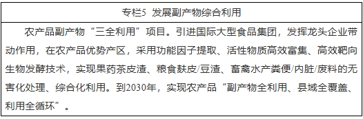 3﹒发展副产物综合利用。建立副产物综合利用技术体系,研制一批新技术、新设备、新产品,推进秸秆、稻壳、米糠、麦麸、饼粕、果蔬皮渣、畜禽骨血、水产品皮骨内脏等副产物的全值高值利用。坚持资源化、减量化、可循环发展方向,开展农产品及其加工副产物循环利用、梯次利用试点示范,重点推介一批农产品加工和副产物综合利用典型。