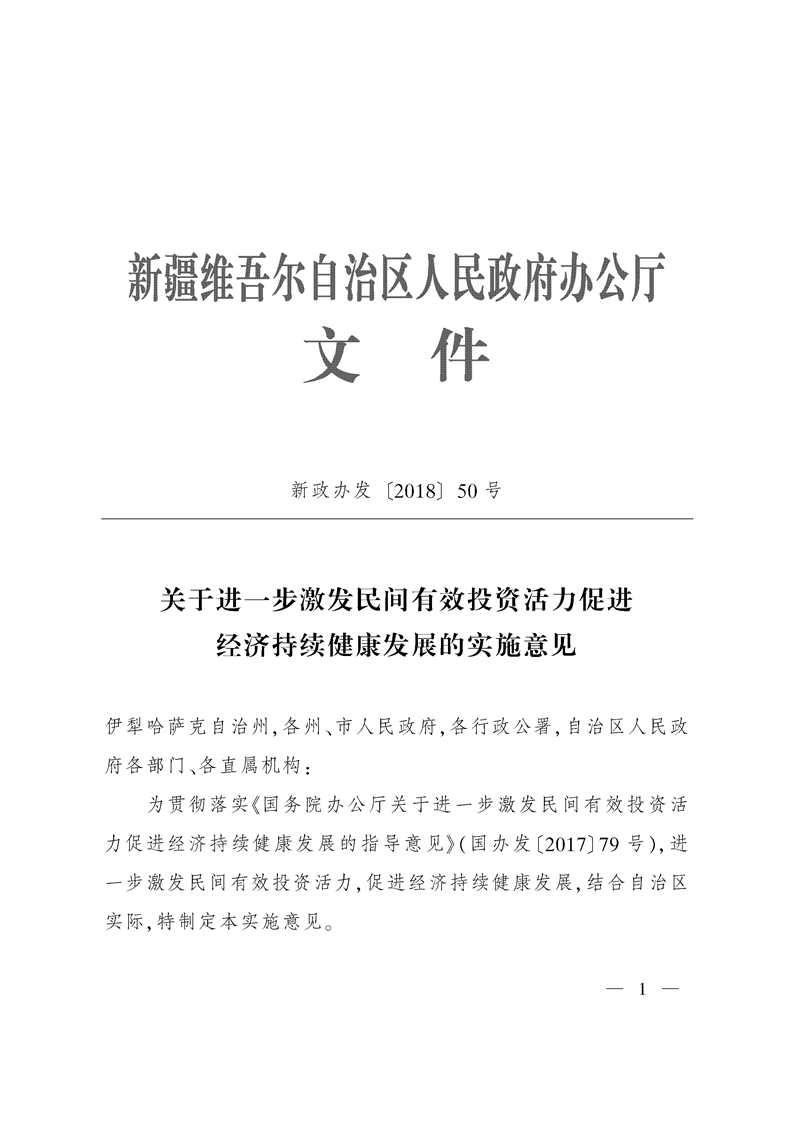 新疆维吾尔自治区人民政府办公厅关于进一步激发社会领域投资活力的实施意见