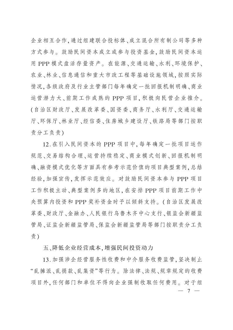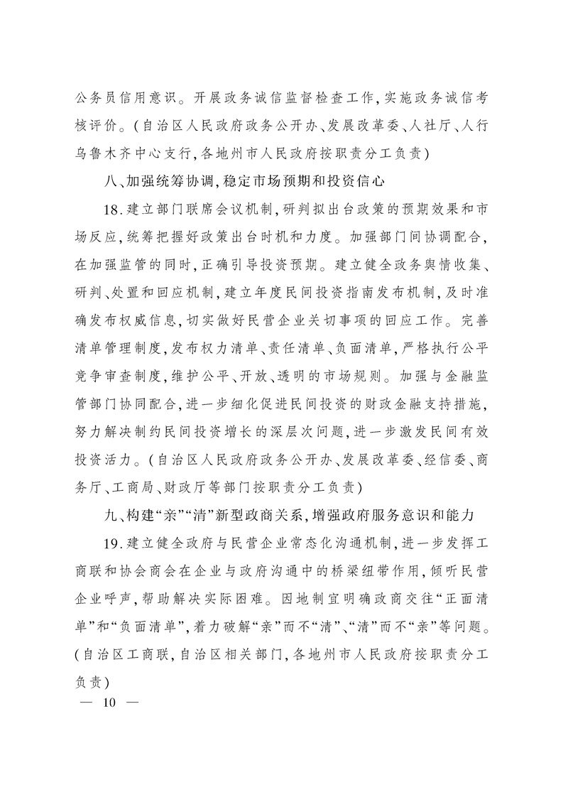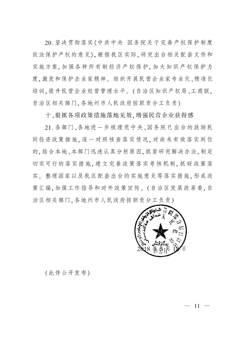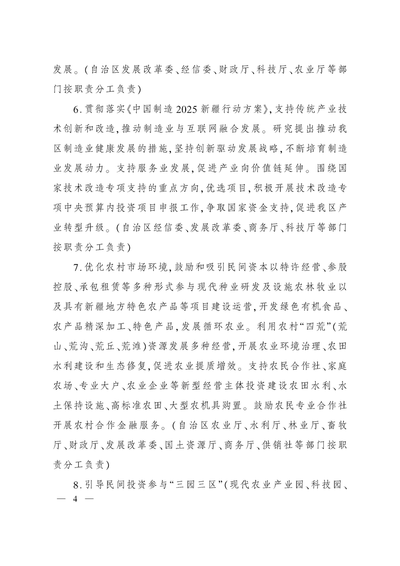 新疆维吾尔自治区人民政府办公厅关于进一步激发民间有效投资活力促进经济持续健康发展的实施意见