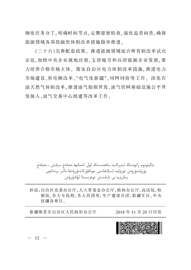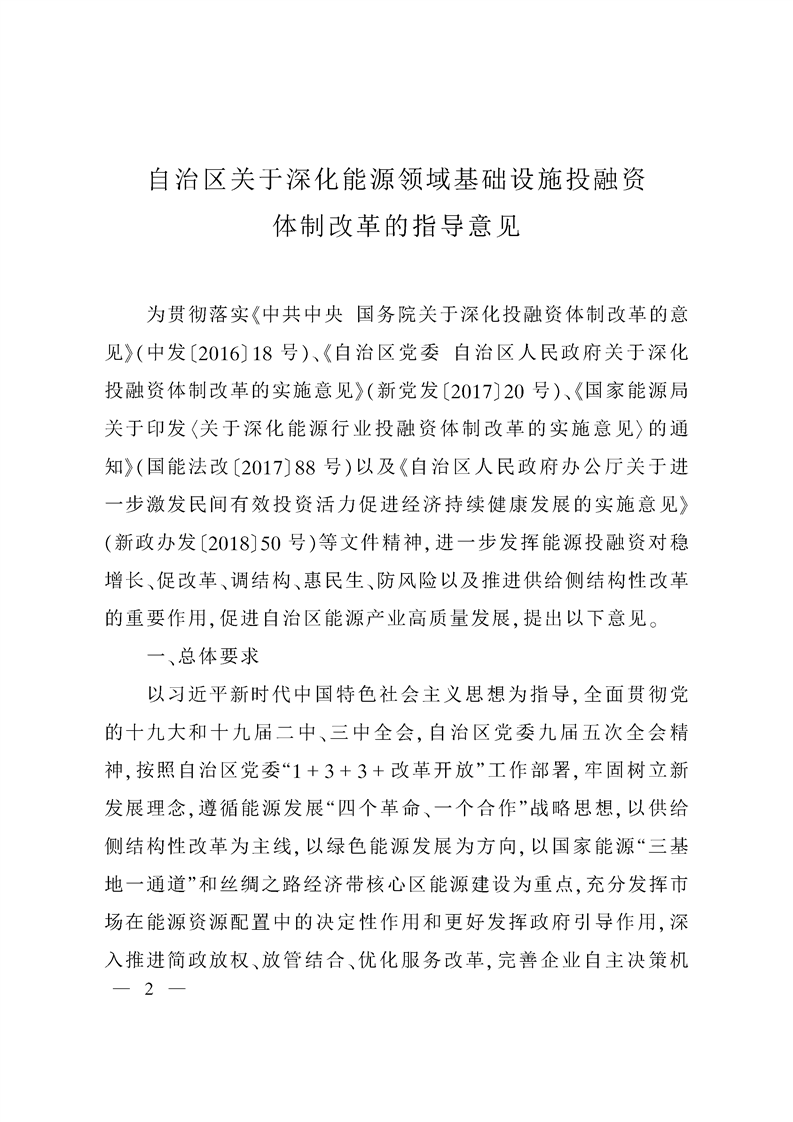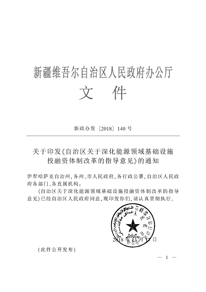 新疆维吾尔自治区人民政府办公厅关于印发《自治区关于深化能源领域基础设施投融资体制改革的指导意见》的通知