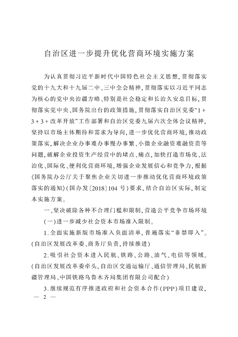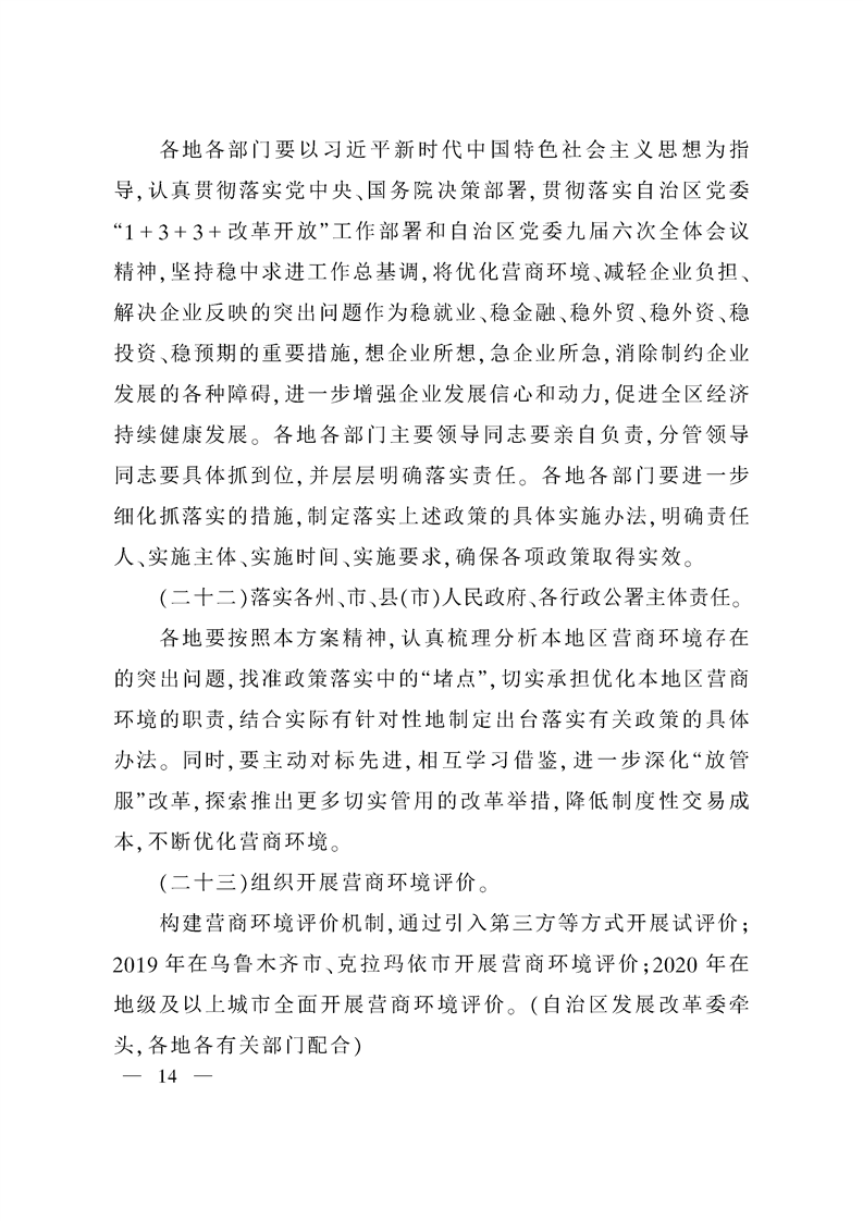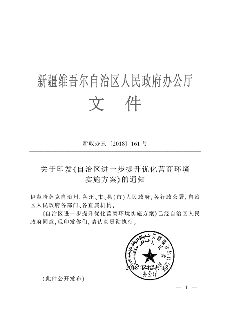 新疆维吾尔自治区人民政府办公厅关于印发《自治区进一步提升优化营商环境实施方案》的通知