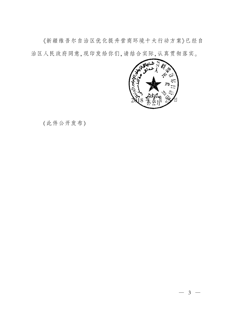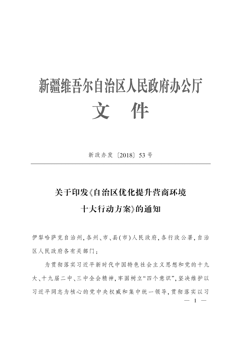 新疆维吾尔自治区人民政府办公厅关于印发自治区优化提升营商环境十大行动方案的通知