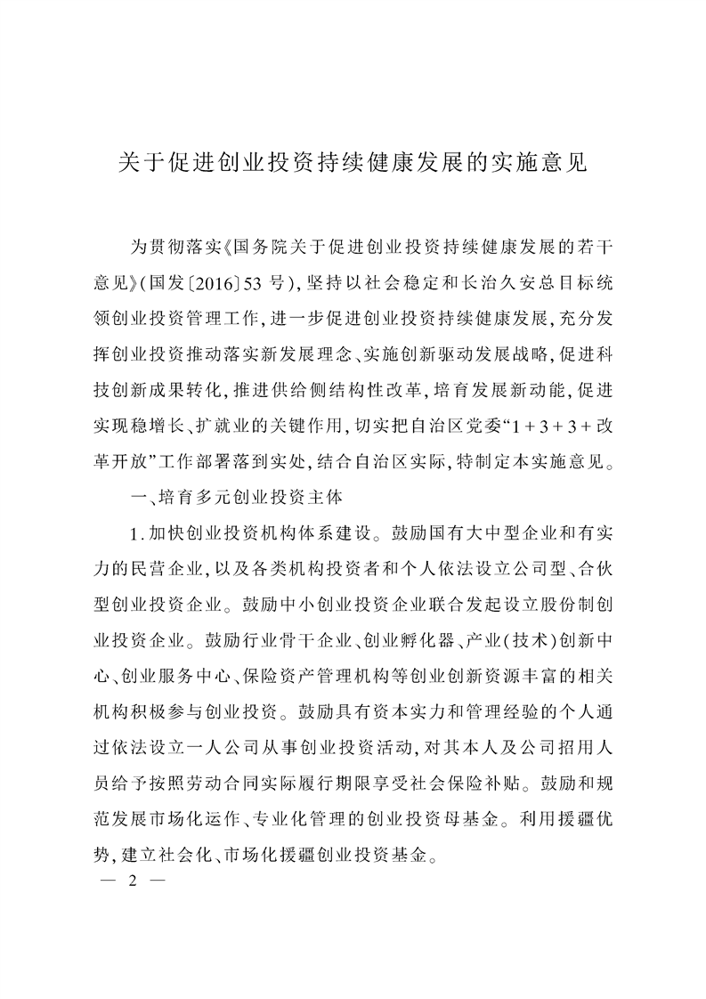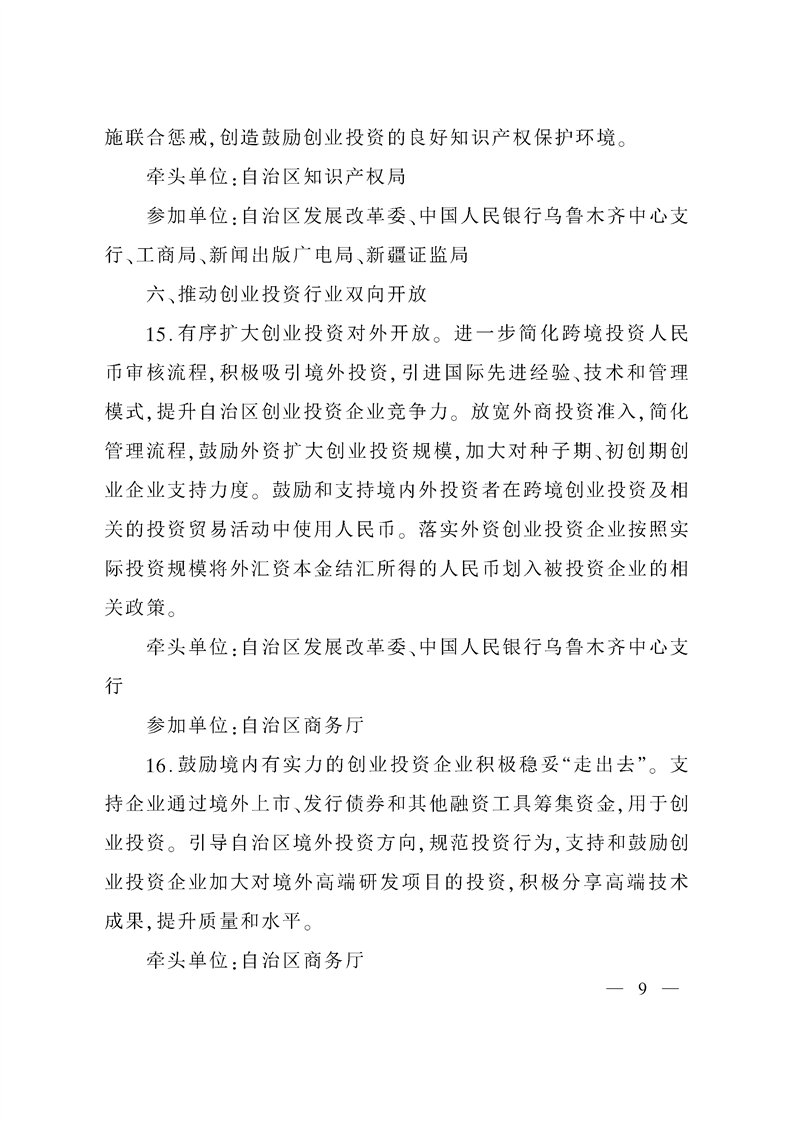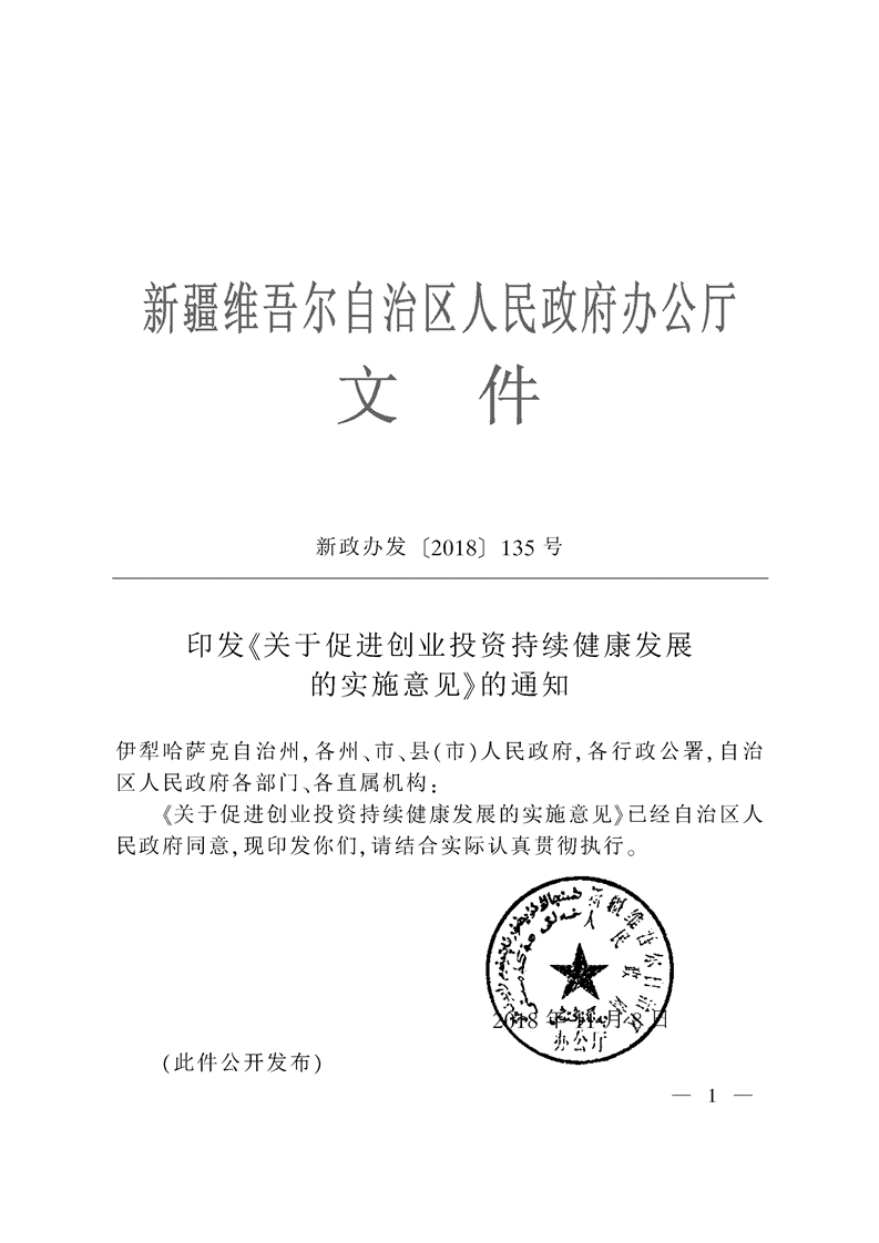 新疆维吾尔自治区人民政府办公厅印发《关于促进创业投资持续健康发展的实施意见》的通知