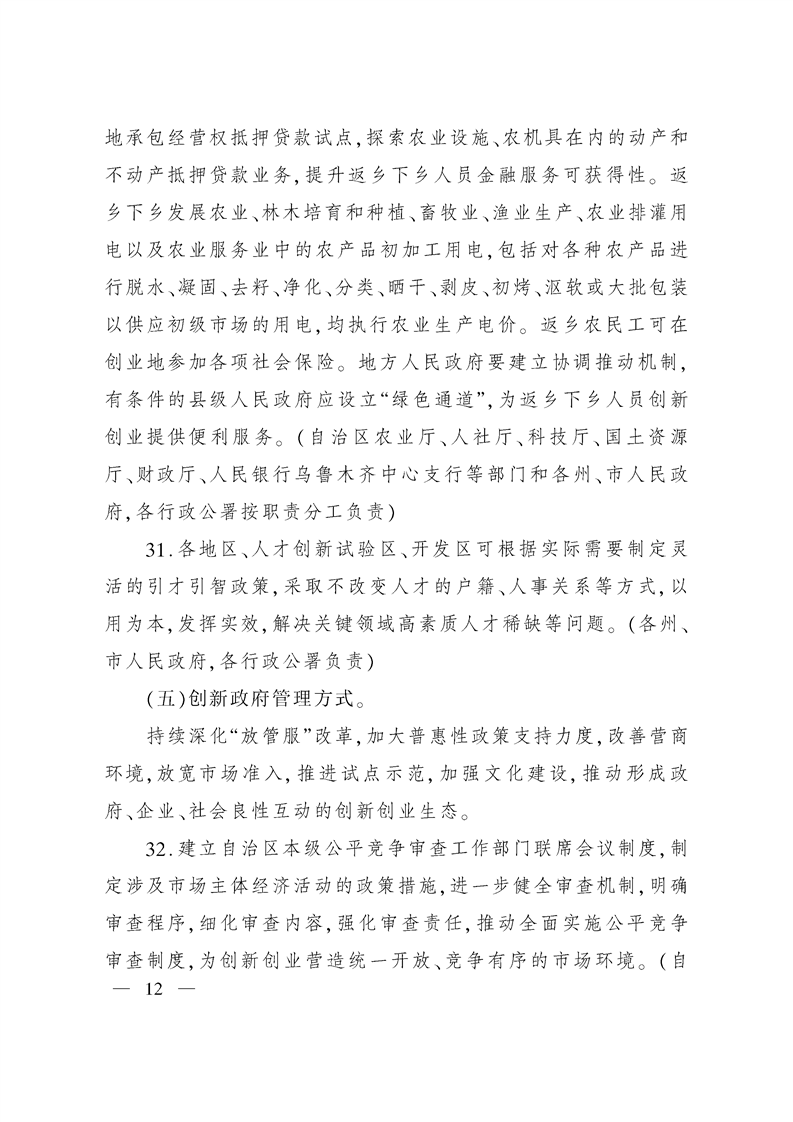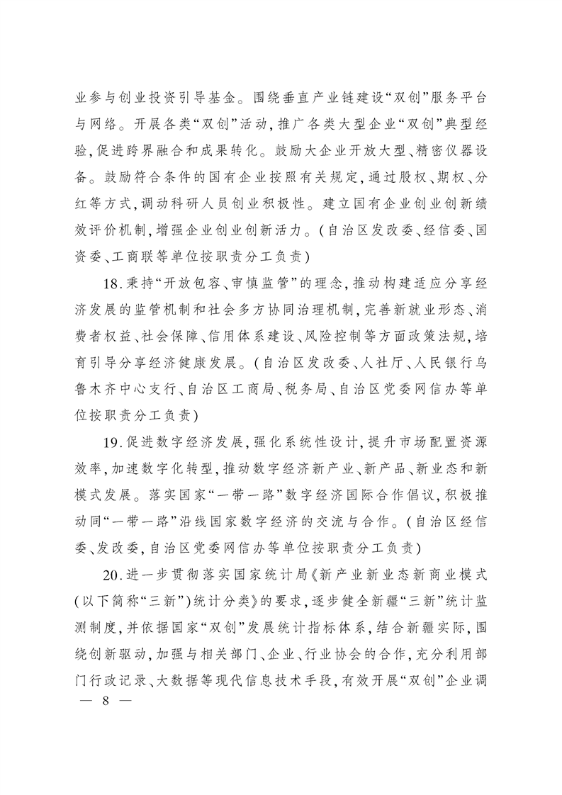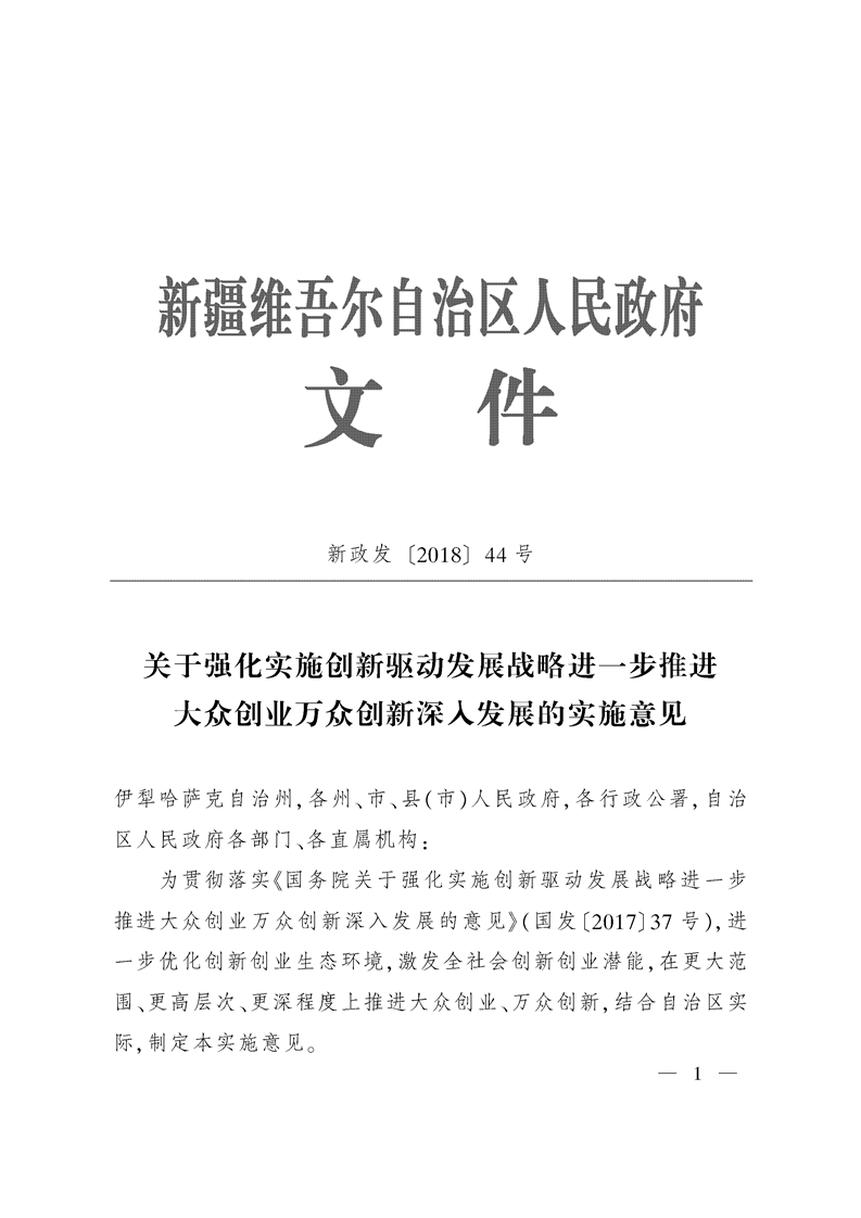 新疆维吾尔自治区人民政府关于强化实施创新驱动发展战略进一步推动大众创业万众创新深入发展的实施意见