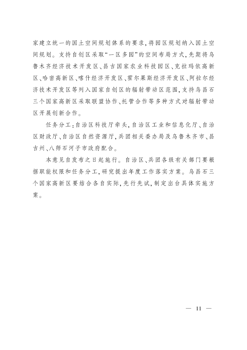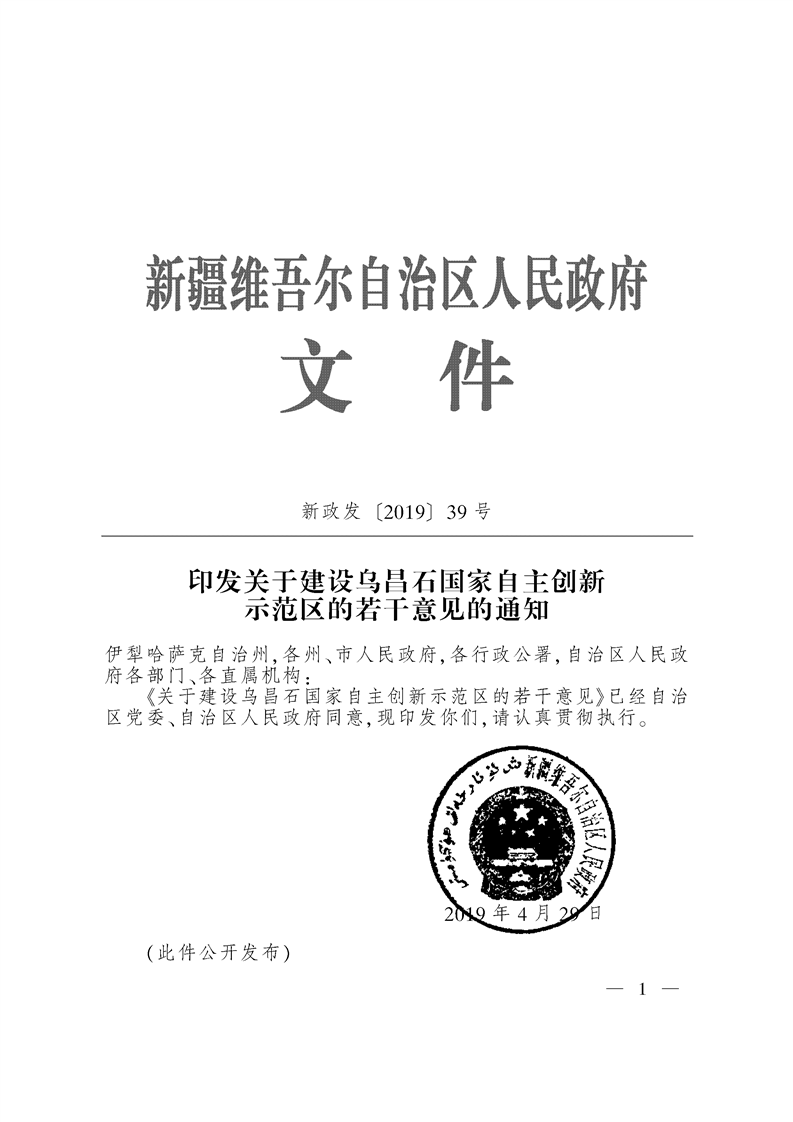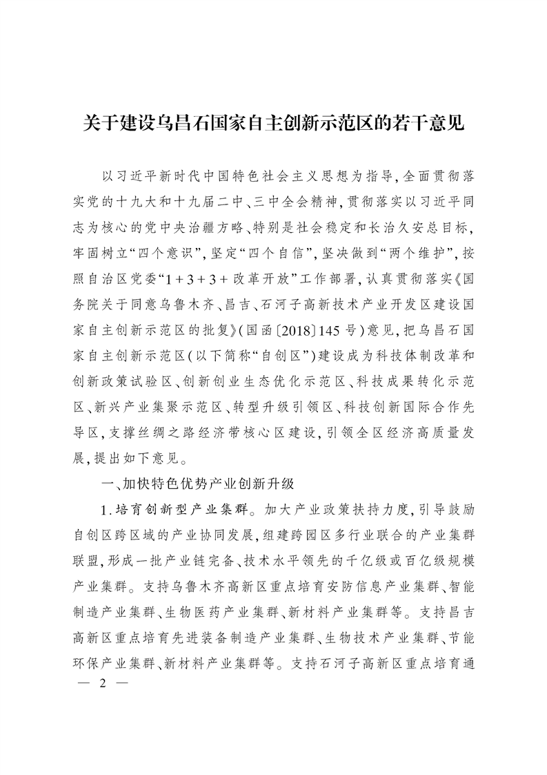 新疆维吾尔自治区人民政府印发关于建设乌石昌国家自主创新示范区的若干意见的通知