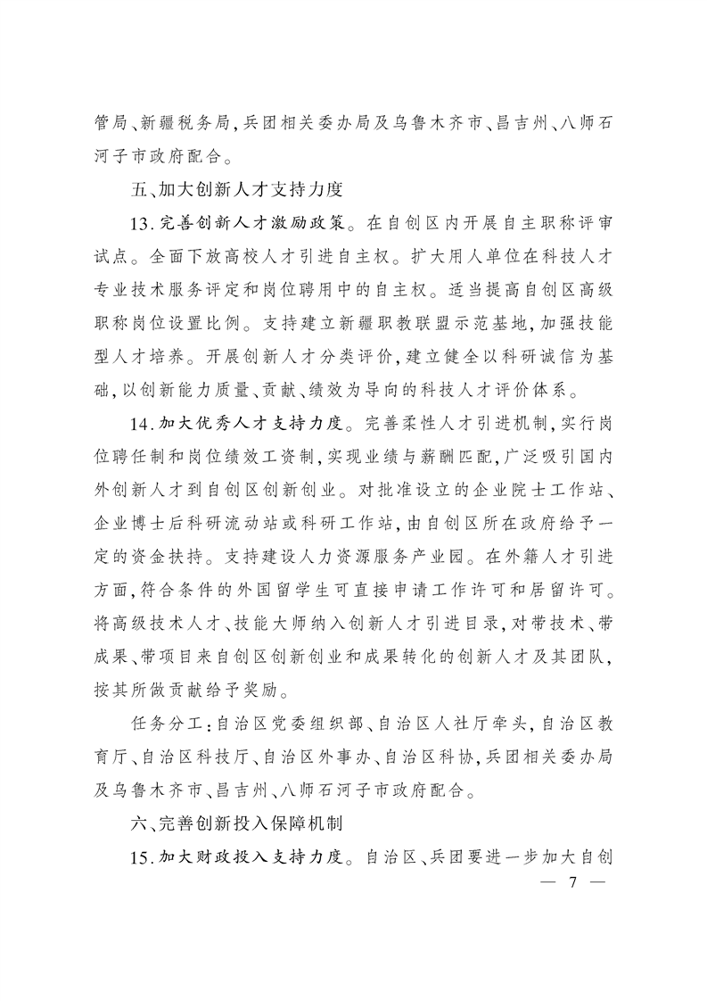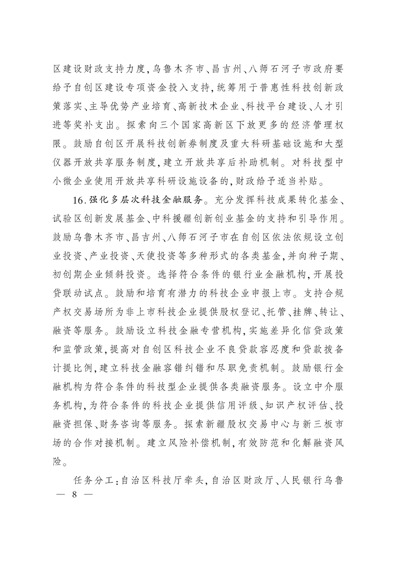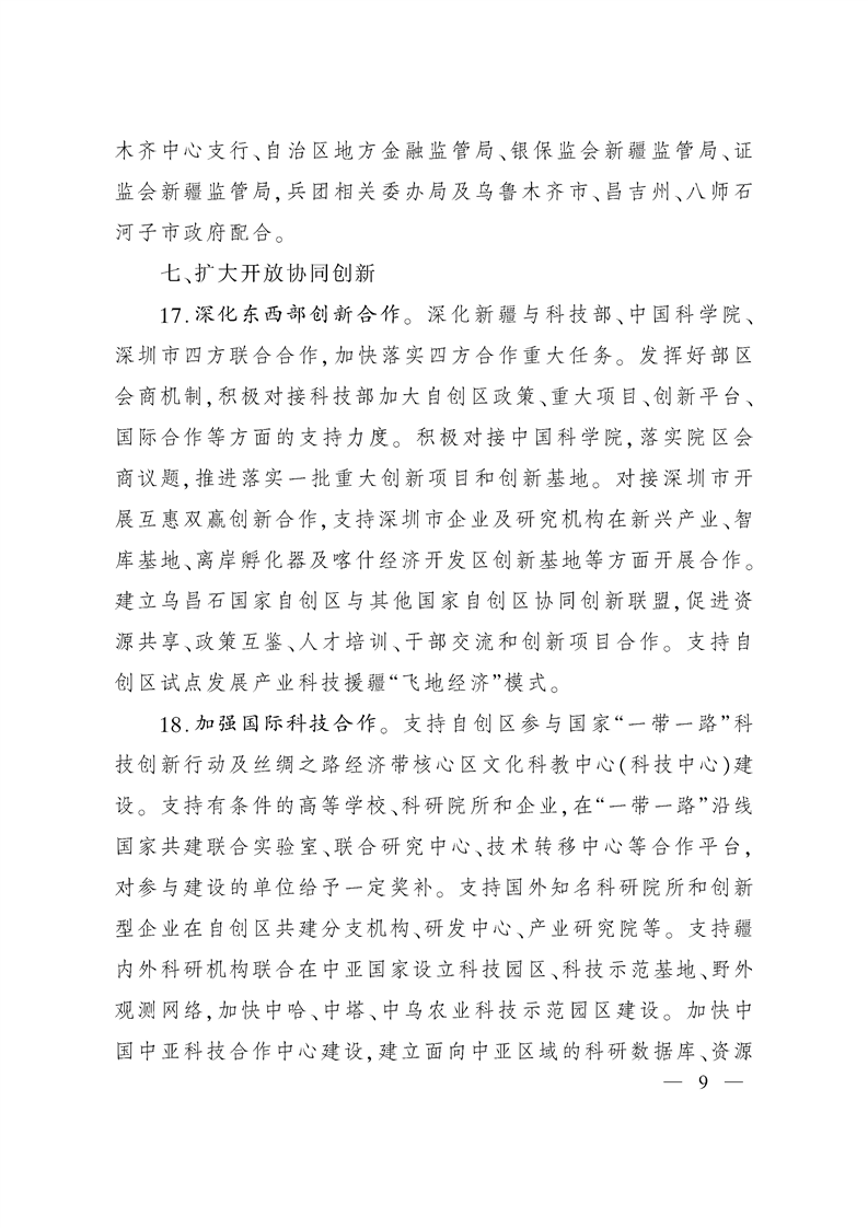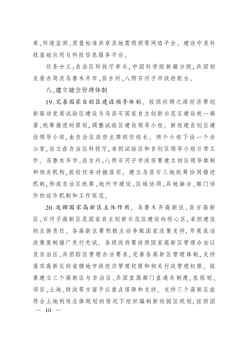 新疆维吾尔自治区人民政府印发关于建设乌石昌国家自主创新示范区的若干意见的通知